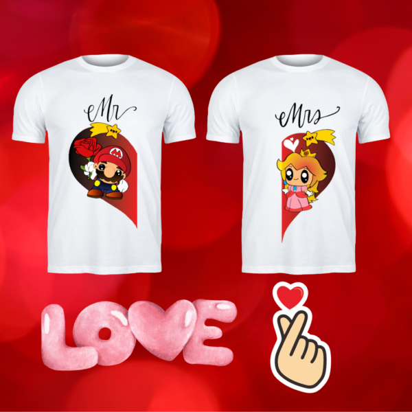 PACKS CAMISETAS PAREJAS CON ESTAMPADO MARIO & PEACH