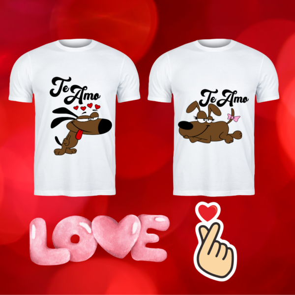 PACKS CAMISETAS PAREJAS CON ESTAMPADO PERRITOS ENAMORADOS